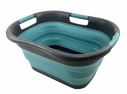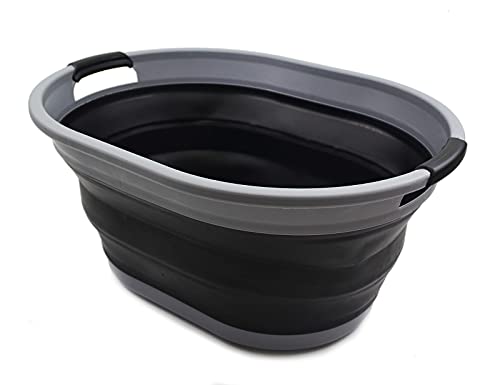 SAMMART 38L zusammenklappbarer Wäschekorb aus Kunststoff – ovale Wanne/Korb – faltbarer Aufbewahrungsbehälter-tragbare Waschwanne – platzsparender Wäschekorb