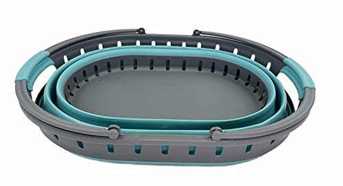 SAMMART Ovaler Wäschekorb aus Kunststoff, 28 l, faltbar, Pop-Up-Aufbewahrungsbehälter/Organizer, tragbar, platzsparend (Grau/Karolinenblau)