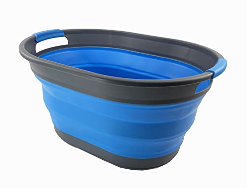 SAMMART 28L Faltbarer Wäschekorb aus Kunststoff - Ovale Wanne/Korb - Faltbarer Aufbewahrungsbehälter/Organizer - Tragbarer Waschtrog - Platzsparender Wäschekorb Wasserkapazität 22L