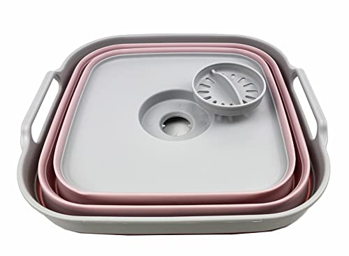 SAMMART Combo Zusammenklappbares Spülset, Eimer, Abtropfgestell, Geschirrwanne und Wäschekorb mit Griff – platzsparend, Camping-Set