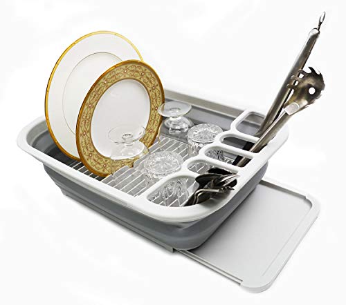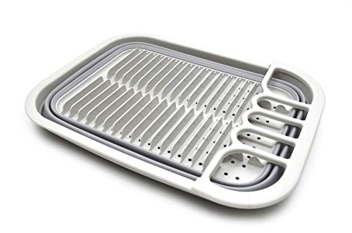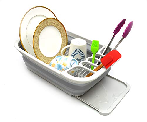SAMMART 12L zusammenklappbares Abtropfgestell aus Kunststoff mit Abtropfbrett – faltbares Trockengestell-Set – tragbarer Geschirr-Organizer – platzsparendes Küchen-Aufbewahrungstablett