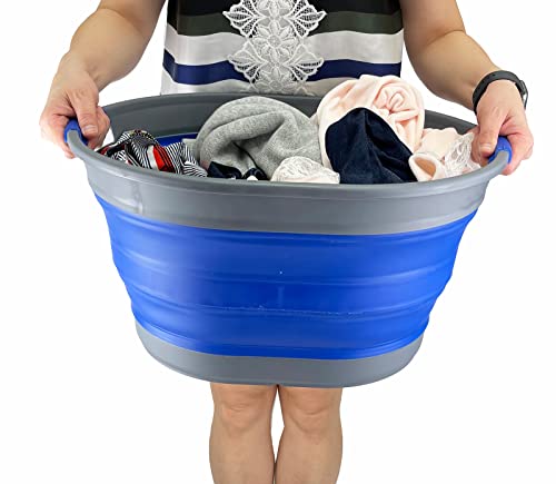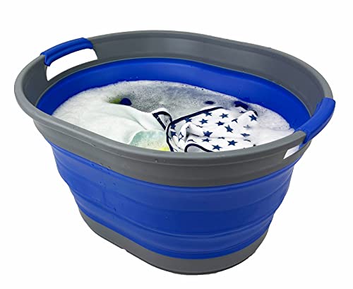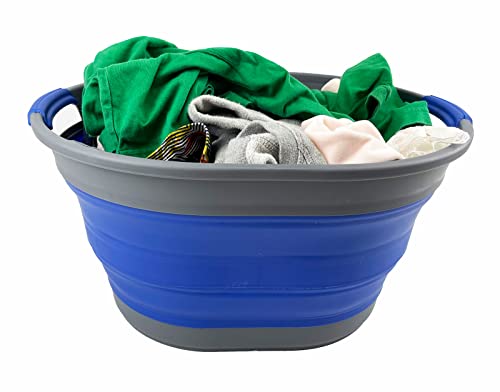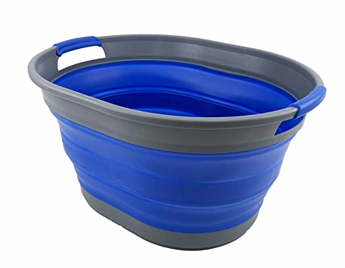 SAMMART 23L zusammenklappbarer Wäschekorb aus Kunststoff – ovale Wanne/Korb – faltbarer Aufbewahrungsbehälter/Organizer – tragbare Waschwanne – platzsparender Wäschekorb