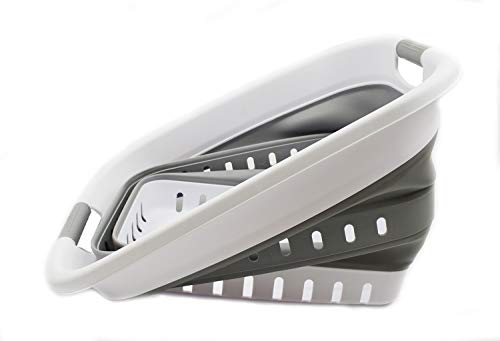 Einzelheiten: **Set mit 2 zusammenklappbaren TPE/PP-Wäschekorb **Marke: SAMMART **Material: TPE & PP **Erweiterte Größe: 54 x 40,8 x 30,3 (h) cm **Größe zusammengeklappt: 54 x 40,8 x 7,5 (h) cm