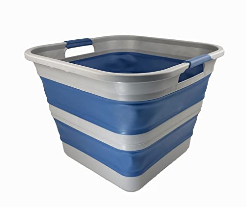 SAMMART 35L zusammenklappbarer Kunststoff-Wäschekorb – quadratische Wanne/Korb – faltbarer Aufbewahrungsbehälter/Organizer – tragbare Waschwanne – platzsparender Wäschekorb
