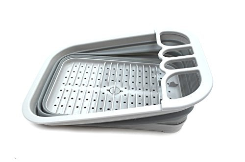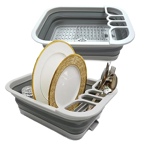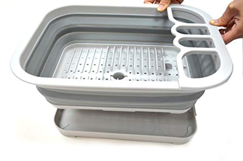SAMMART 7,3 l zusammenklappbares Geschirrabtropfgestell mit Abtropfbrett–faltbares Wäscheständer-Set – tragbarer Geschirr-Organizer