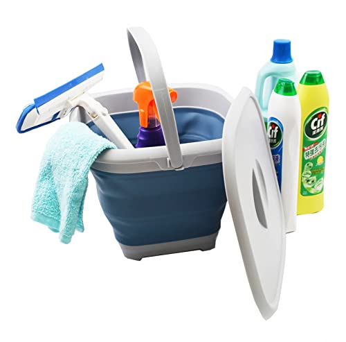 SAMMART 8,5 L Faltbarer quadratischer praktischer Eimer mit Deckel/Faltbarer quadratischer Wassereimer mit Deckel/tragbare Wanne mit Griff und Deckel. Größe 31x31cm