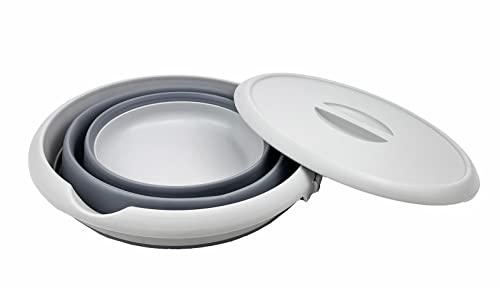 - Platzsparend mit erweiterter Größe: 30 (Durchmesser) x 22,7 (H) cm und einer Höhe von nur 5,4 cm nach dem Zusammenklappen sparen Sie über 70 % Platz bei der Aufbewahrung. Fassungsvermögen: 8,5 l