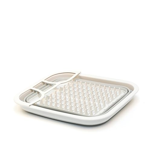 SAMMART Collapsible Dish Drainer with Drainer Board - Foldable Drying Rack Set - Portable Dinnerware Organizer - Space Saving Kitchen Storage Tray