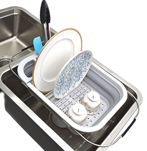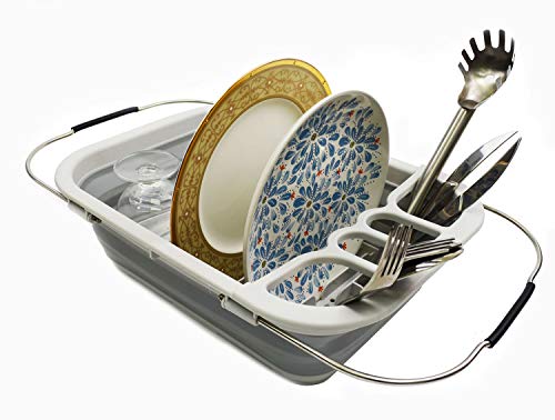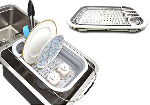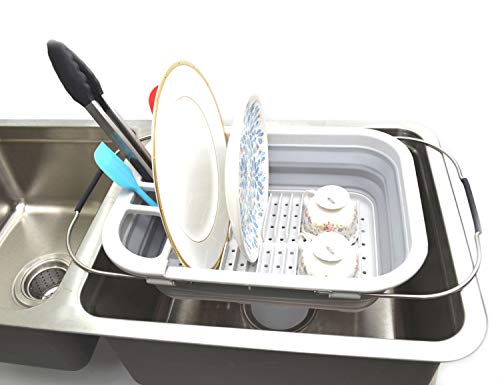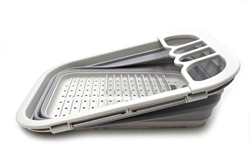 SAMMART erweiterbarer und zusammenklappbarer Abtropfgestell mit Abtropffläche - faltbares Wäscheständer-Set - tragbarer Geschirr-Organisator - platzsparende Küchenablage
