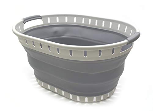 SAMMART Faltbarer Wäschekorb aus Kunststoff, 25 l, zusammenklappbar, Pop-Up-Aufbewahrungsbehälter/Organizer, tragbarer Einkaufskorb, platzsparender Korb