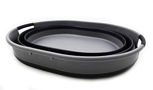 Einzelheiten: ** Faltbare ovale TPE / PP-Wanne ** Marke: SAMMART ** Material: TPE und PP ** Erweiterte Größe: 47 x 38,6 x 24,4 cm ** Zusammengeklappte Größe: 47 x 38,6 x 6,6 cm ** Kapazität: 19,5 l