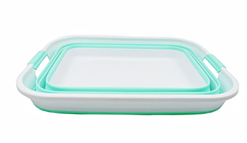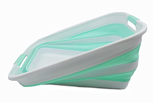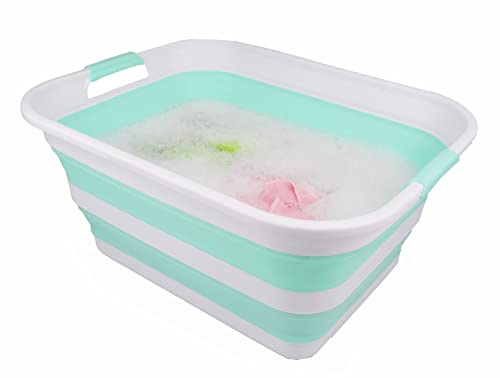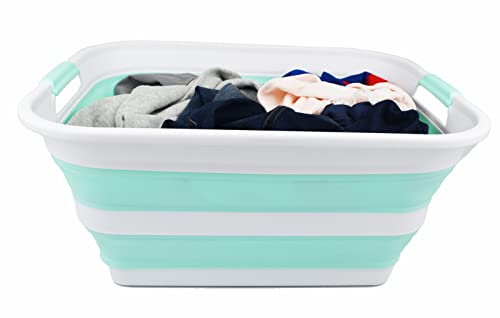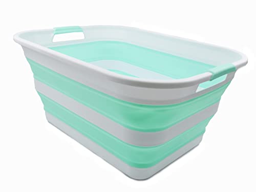 - SAMMART 42L Wäschekorb aus Kunststoff, faltbar, faltbar, tragbar, platzsparend (1, Weiß Hellgrün)