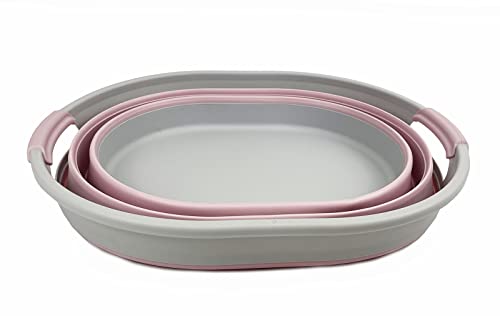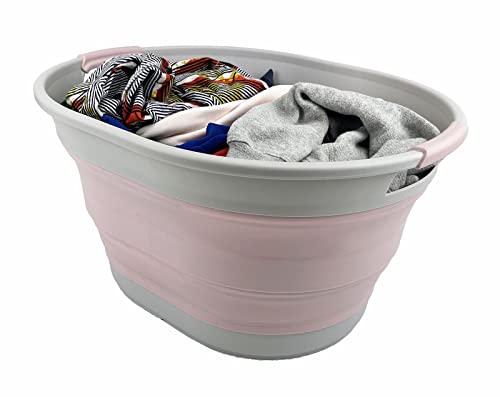 SAMMART Wäschekorb aus Kunststoff, zusammenklappbar, 23 l, ovale Wanne/Korb – faltbarer Aufbewahrungsbehälter/Organizer – tragbare Waschwanne