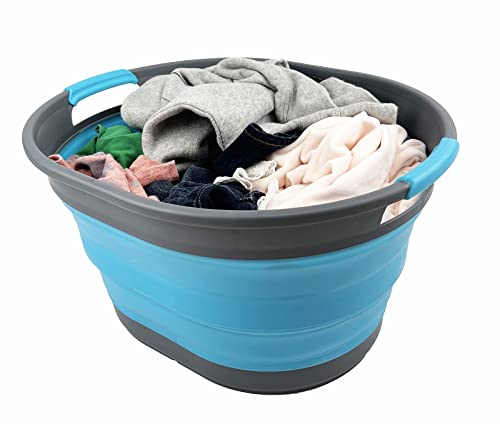 SAMMART Wäschekorb aus Kunststoff, zusammenklappbar, 23 l, ovale Wanne/Korb – faltbarer Aufbewahrungsbehälter/Organizer – tragbare Waschwanne – platzsparender Wäschekorb