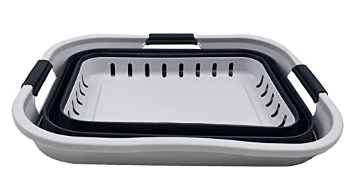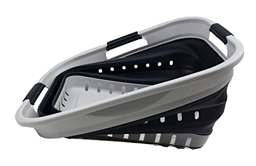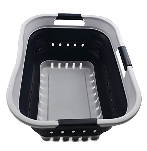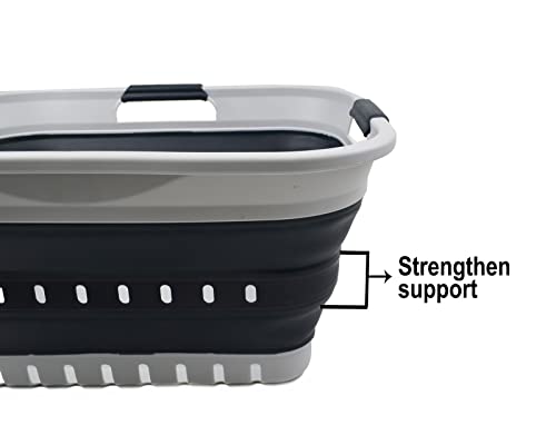 SAMMART Wäschekorb aus Kunststoff, zusammenklappbar, 30 l, mit 3 Griffen, faltbar, Aufbewahrungsbehälter, Organizer, tragbare Waschwanne, platzsparender Korb