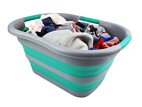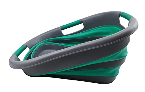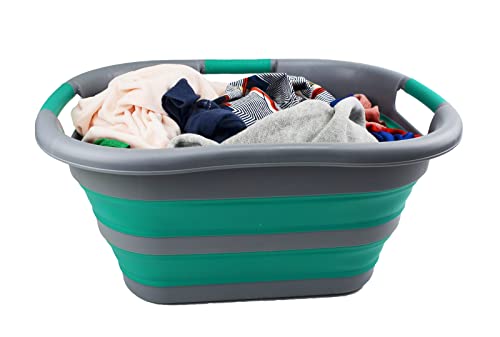 SAMMART Wäschekorb, faltbar, Kunststoff, 30 l, faltbar, Pop-Up-Aufbewahrungsbehälter/Organizer – tragbare Waschwanne – platzsparender Wäschekorb (Dunkelgrau/Blaugrün)