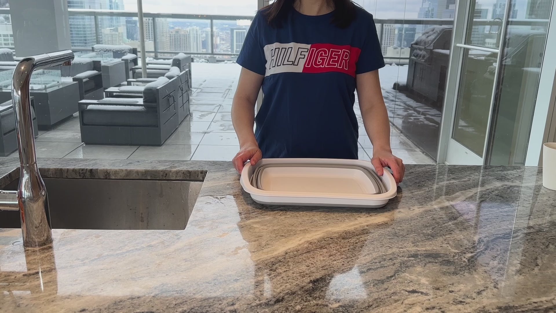 Einzelheiten: **Zusammenklappbare rechteckige TPE/PP-Wanne **Marke: SAMMART **Material: TPE und PP **Erweiterte Größe: 40 x 31 x 16 cm **Zusammengeklappte Größe: 40 x 31 x 5,5 cm
