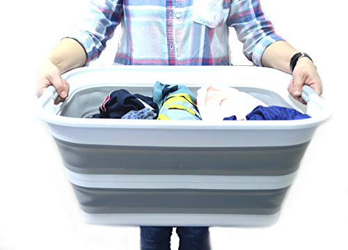 SAMMART 42L Zusammenklappbarer Wäschekorb aus Kunststoff – faltbarer Pop-Up-Aufbewahrungsbehälter/Organizer – tragbare Waschwanne – platzsparender Wäschekorb