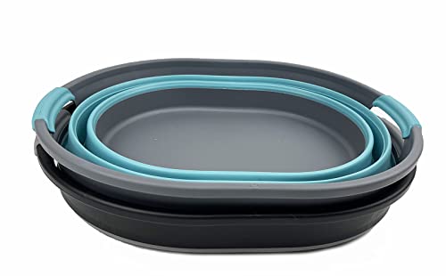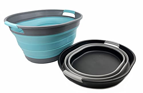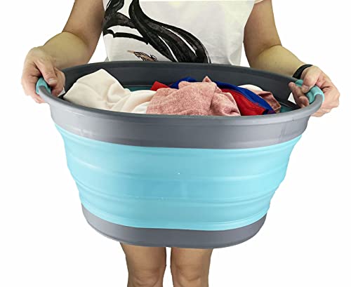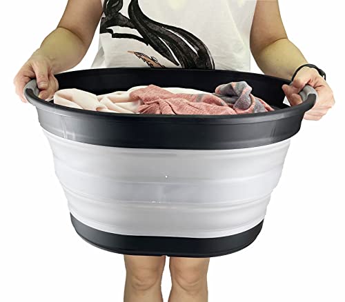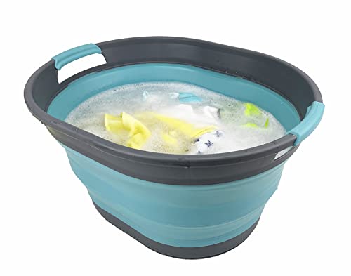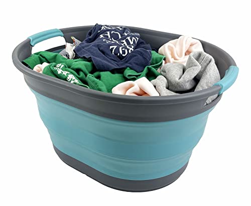 SAMMART 23L zusammenklappbarer Wäschekorb aus Kunststoff – ovale Wanne/Korb – faltbarer Aufbewahrungsbehälter – tragbare Waschwanne – platzsparender Wäschekorb