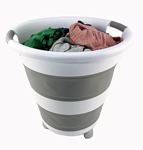 SAMMART Zusammenklappbarer Wäschekorb aus Kunststoff mit Rädern, 34L, Faltbarer Pop-Up-Aufbewahrungsbehälter/Organizer mit Rädern, tragbare Waschwanne, platzsparender Korb